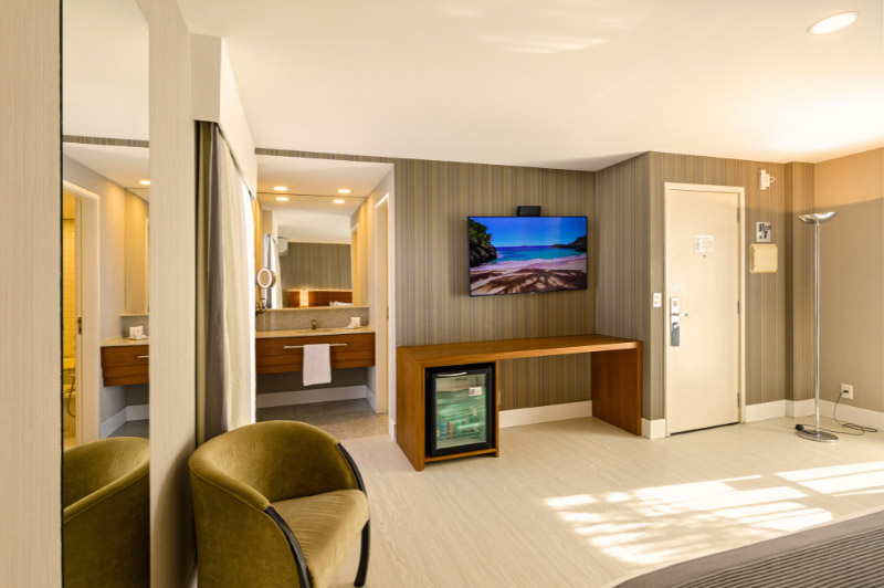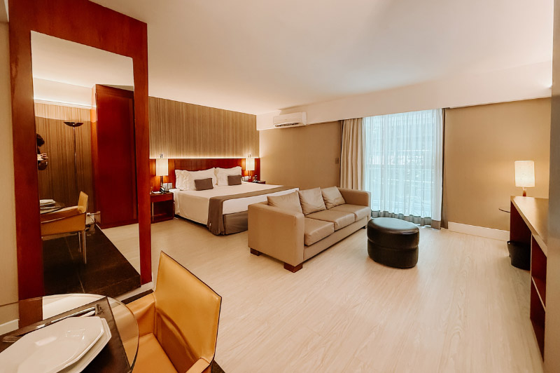 A comfortable stay is the top priority of Promenade Leblon! With spacious accommodation with contemporary décor and an elegant and cozy setting, the Apart Hotel provides comfort, customized services and several leisure options, including swimming pool, beaches, sauna, and fitness room. You will love the delicious breakfast buffet offered by the Zum Bistro Café, with a varied selection of fruits, breads, juices, jams, and more. Enjoy it! Make your reservation now!